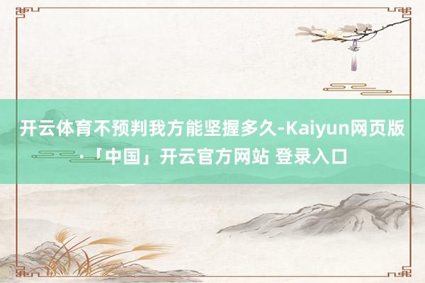 开云体育不预判我方能坚握多久-Kaiyun网页版·「中国」开云官方网站 登录入口