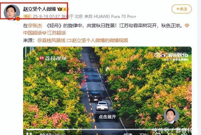 近日, 赵立坚在社交媒体上共享了一段江苏文旅景不雅的宣传视频。 值得防范的是,视频中使用了张杰的歌曲行为布景音乐。 而且, 赵立坚在发布这段视频时还成心艾特了张杰的名字。