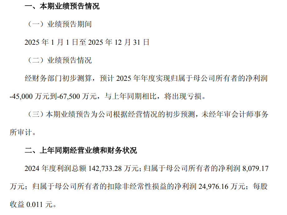 与股价连板酿成强烈对比的是,公司1月24日同步清楚的2025年年度功绩预报知晓,瞻望当期罢了包摄于母公司通盘者的净利润为-45000万元至-67500万元,同比由盈转亏。功绩蚀本的主要原因包括两方面:一是下属子公司仓储协议纠纷案计提瞻望欠债约3.14亿元,二是商场价钱波动导致点价来回酿成的镶嵌式生息金融器用公允价值变动损失同比加多。