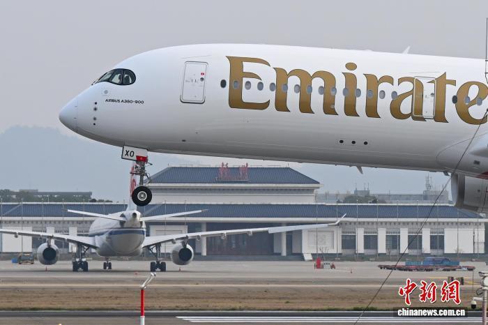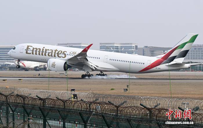 3月8日,EK310航班降落杭州机场。当日,迪拜至杭州航路慎重复航,数百名远在中东的同族乘坐EK310航班从迪拜复返浙江杭州。中新社记者 王刚 摄